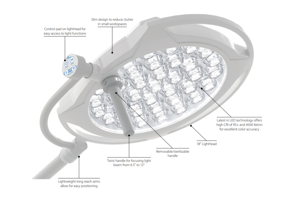 Thirty-six precisely positioned LEDs provide superior shadow control, depth of field, and light intensity to provide caregivers with advanced visual acuity.